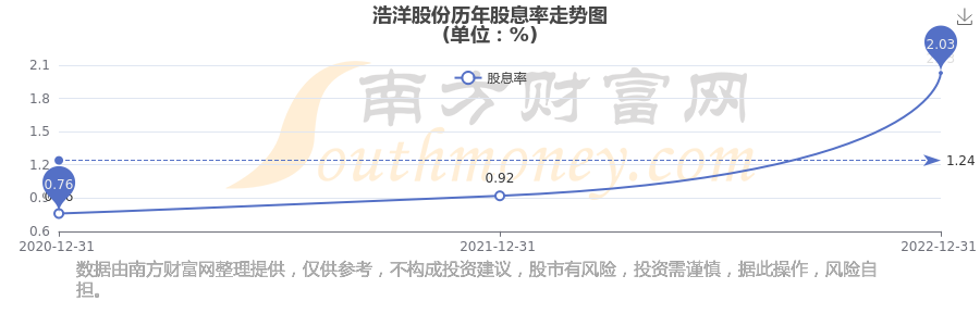 浩洋股份最新一次公布的分紅方案為10派22元。本次權益分派股權登記日為2023年5月29日,除權除息日為2023年5月30日,派息日為2023年5月30日。