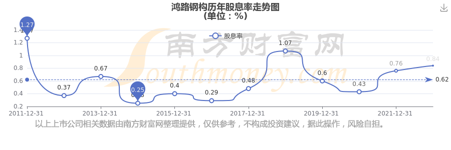 近年鴻路鋼構(gòu)年度股息率走勢如下圖: