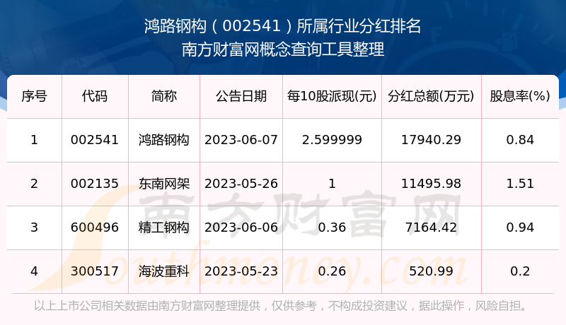 二、鴻路鋼構(gòu)002541行業(yè)分紅排名