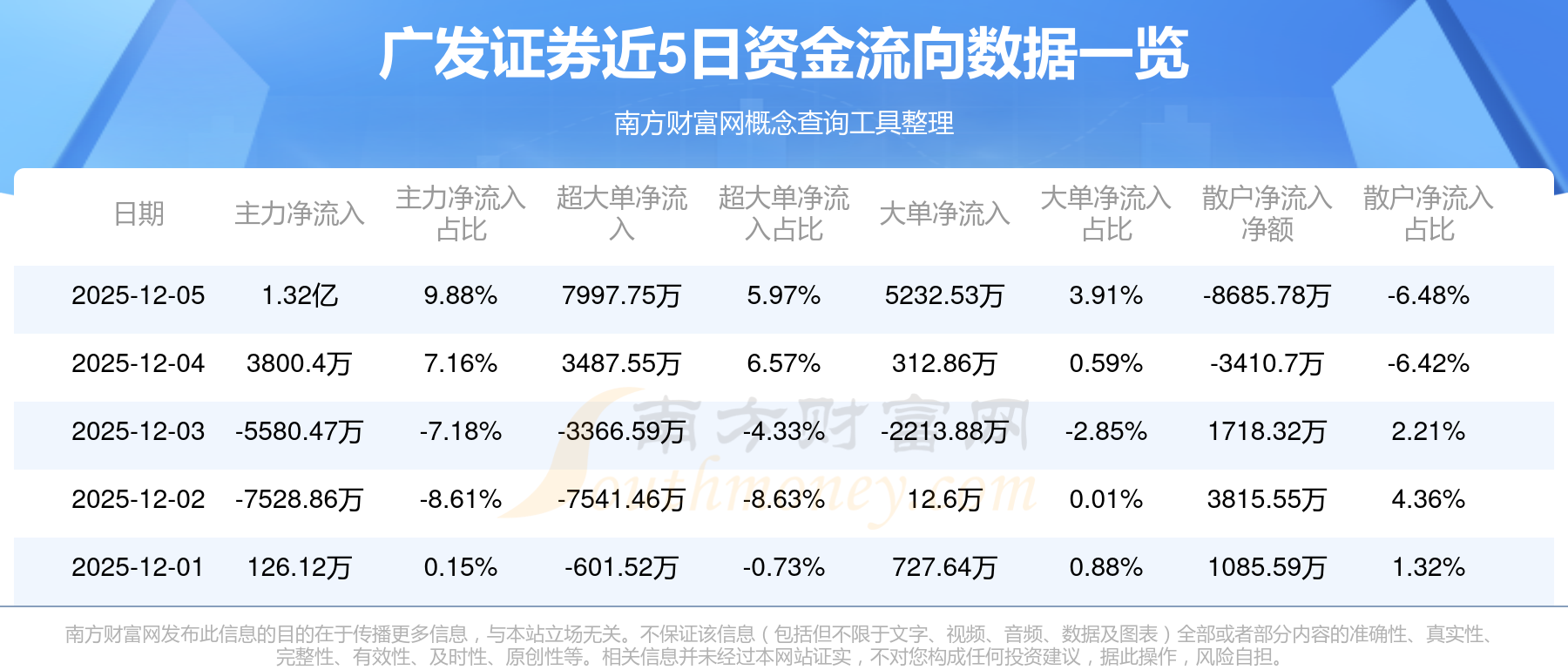 近5日資金流向一覽見下表:
