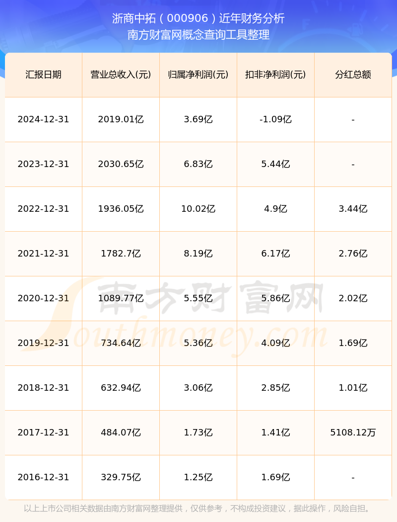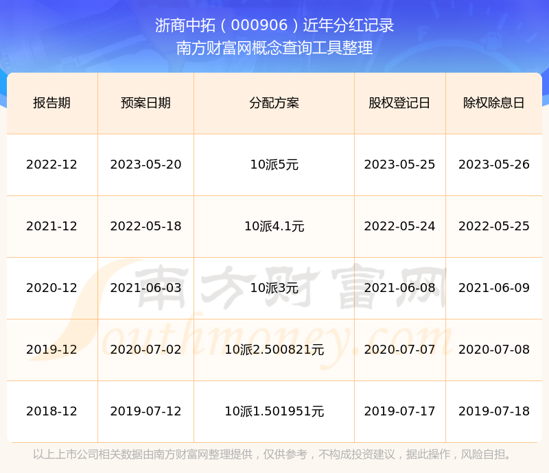 浙商中拓歷年分紅派息情況如下表所示: