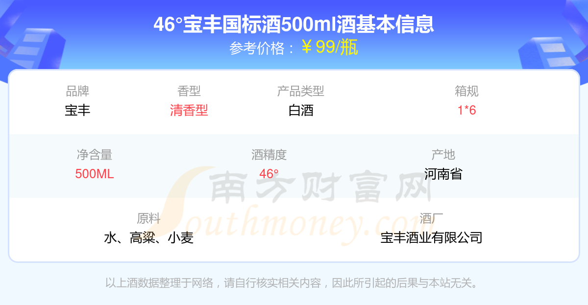 46°寶豐國(guó)標(biāo)酒500ml基本信息