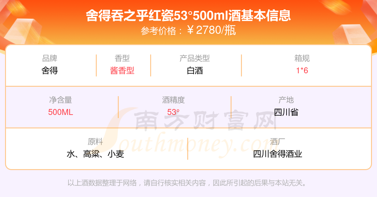舍得吞之乎紅瓷53°500ml基本信息
