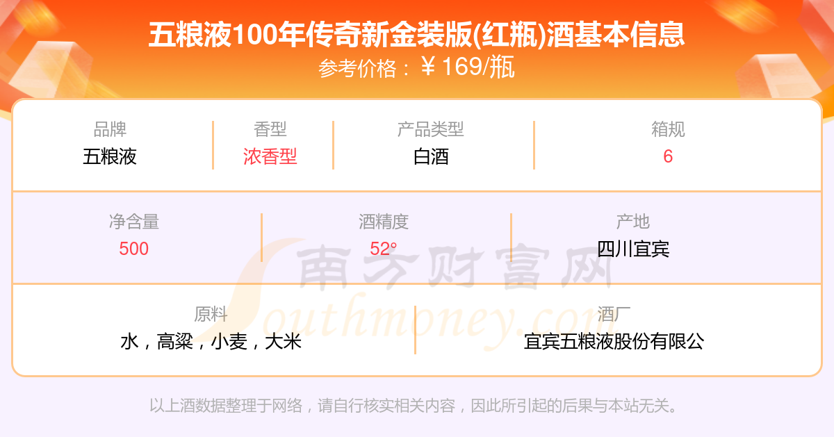 五糧液100年傳奇新金裝版(紅瓶)基本信息