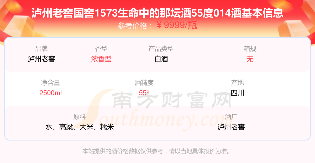 瀘州老窖國窖1573生命中的那壇酒55度014基本信息