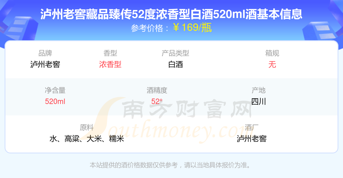 瀘州老窖藏品臻傳52度濃香型白酒520ml基本信息