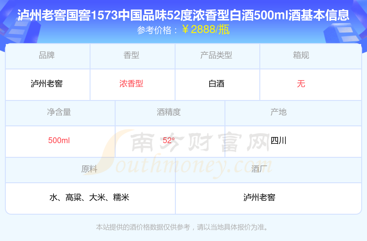 瀘州老窖國窖1573中國品味52度濃香型白酒500ml基本信息