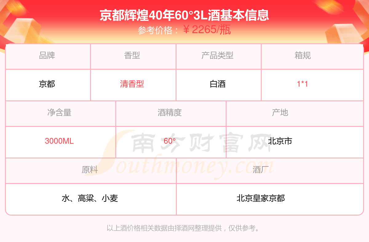 京都輝煌40年60°3L基本信息