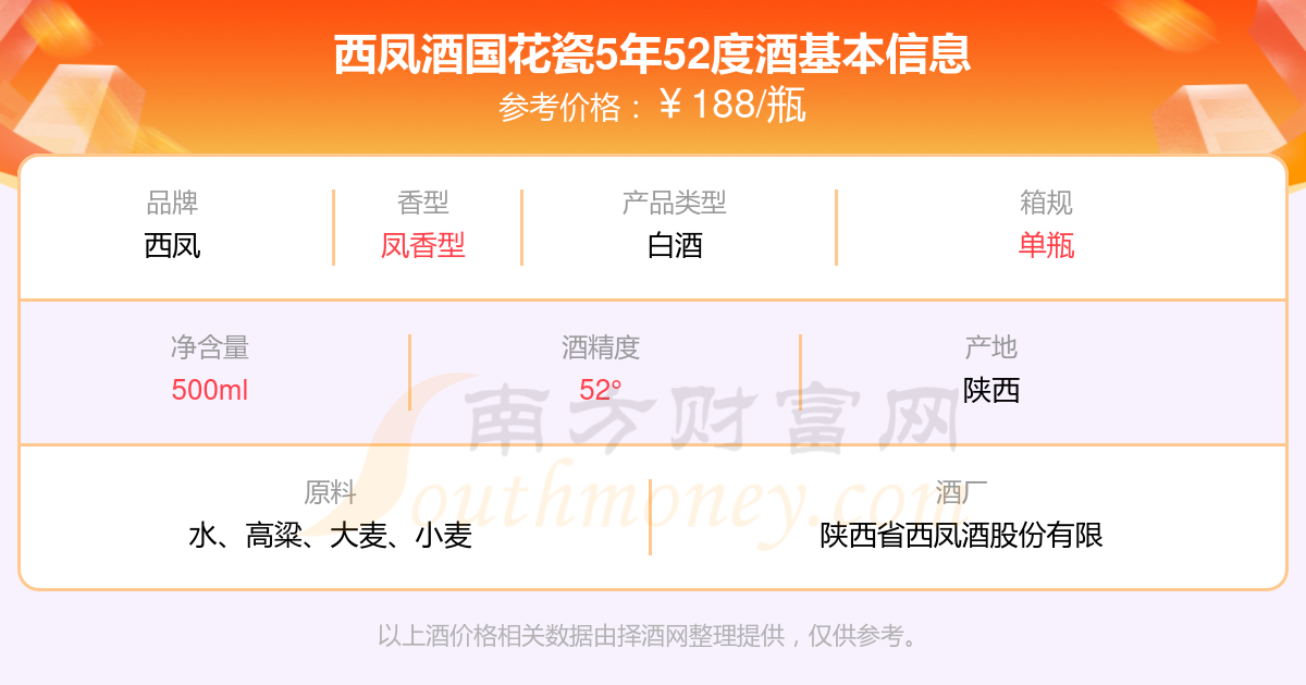 西鳳酒國花瓷5年52度基本信息