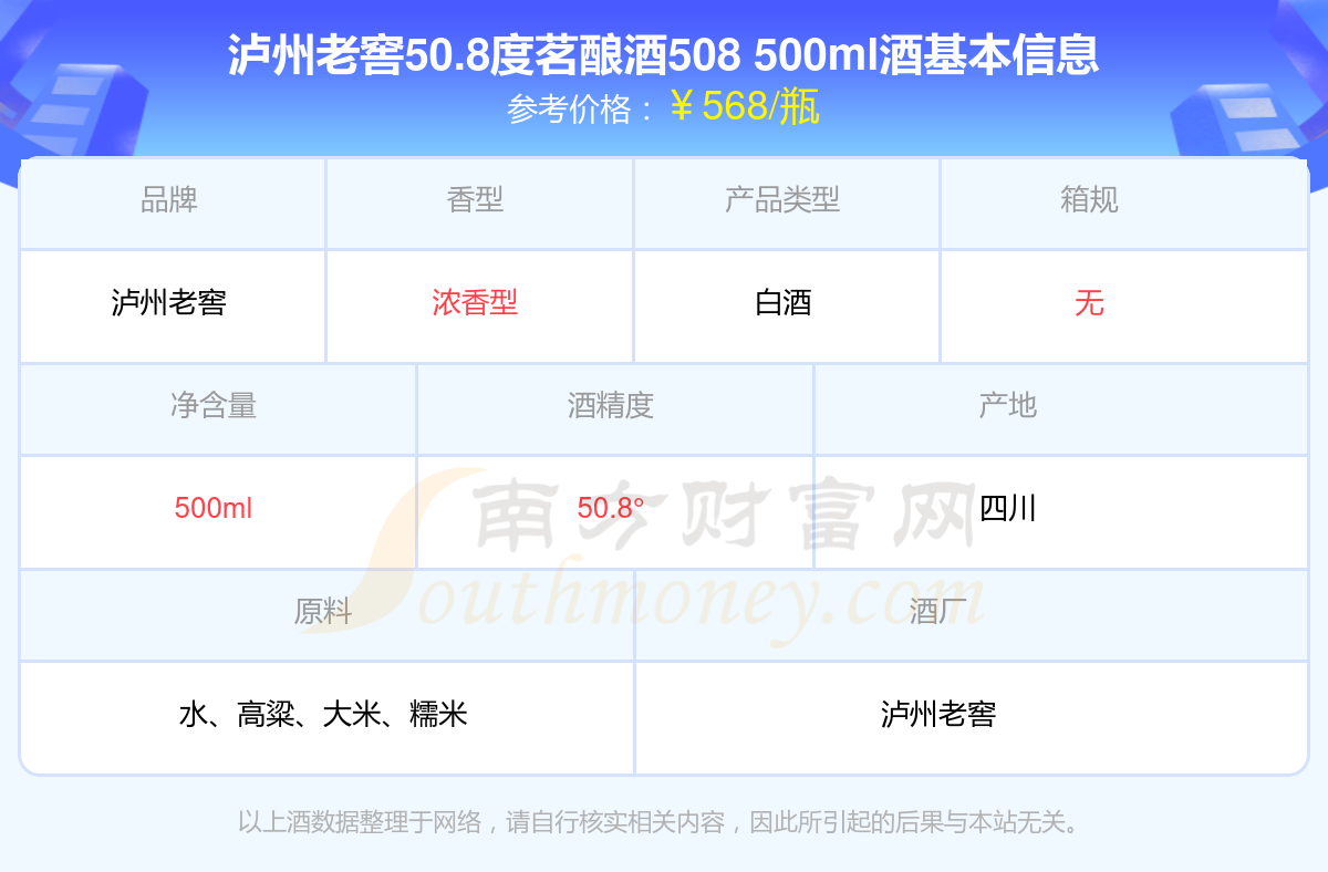 瀘州老窖50.8度茗釀酒508 500ml基本信息