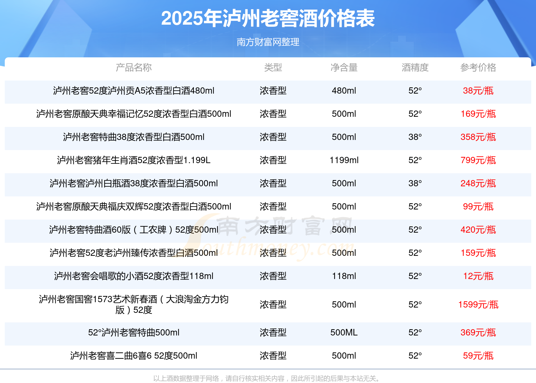 2025年,瀘州老窖國窖1573春釀鼠兆豐年E 55度、瀘州老窖國窖1573生命中的那壇酒55度014、瀘州老窖國窖1573春釀鼠兆豐年A 55度等瀘州老窖酒價格如下:瀘州老窖國窖1573春釀鼠兆豐年E 55度參考價17999元/瓶、瀘州老窖國窖1573生命中的那壇酒55度014參考價9999元/瓶、瀘州老窖國窖1573春釀鼠兆豐年A 55度參考價5088元/瓶。