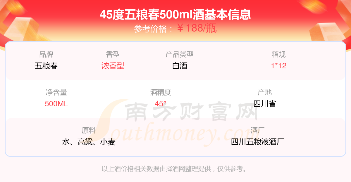 45度五糧春500ml基本信息