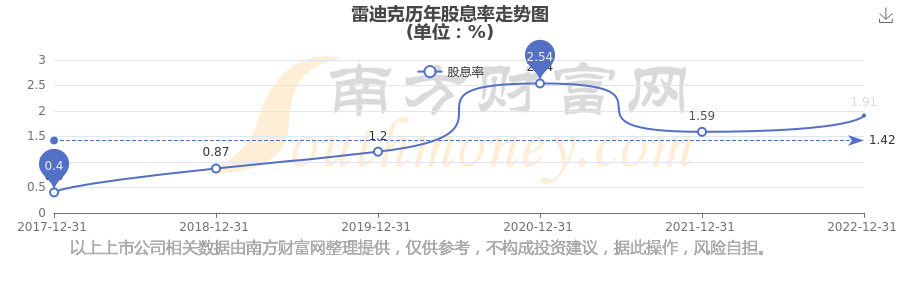 雷迪克最新一次公布的分紅方案為10派4元。本次權益分派股權登記日為2023年5月29日,除權除息日為2023年5月30日,派息日為2023年5月30日。