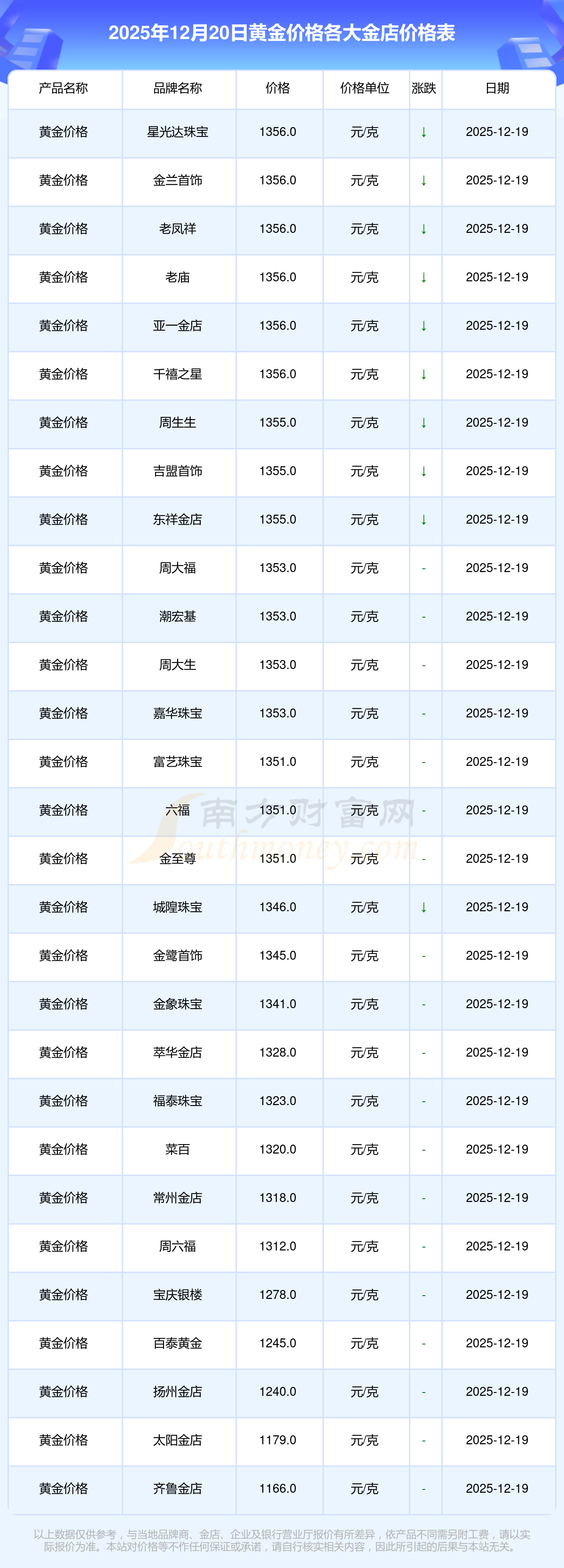 今日黃金價格來了_2025年12月20日各金店黃金價格多少1克?