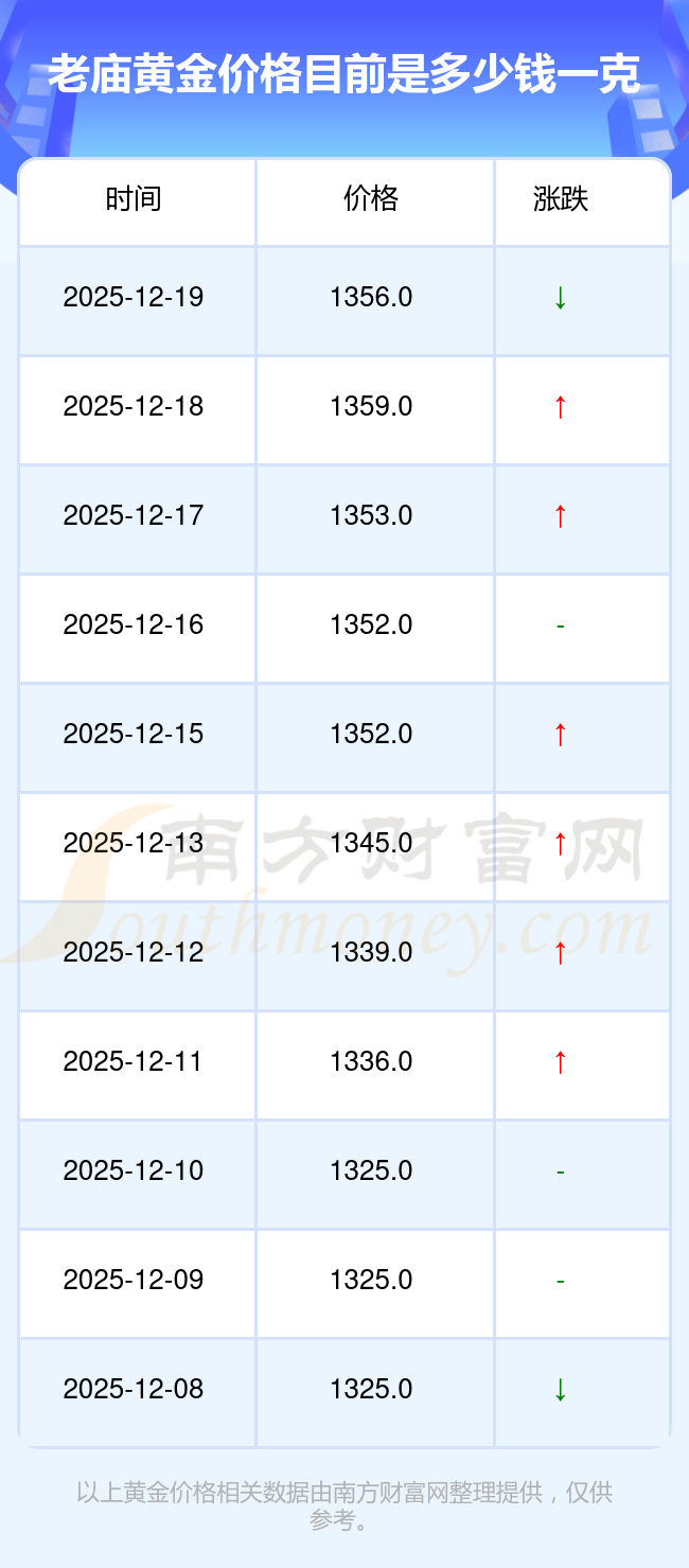 今天黃金價位是多少?現在一克黃金的價格是多少呀?通常情況下黃金每一克的價格大概是多少呢?今日老廟 黃金價格的最新定價為1356.0元/克。