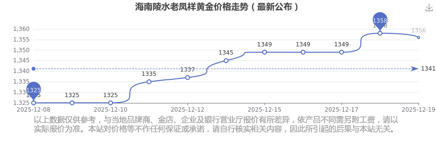 今日海南陵水老鳳祥黃金價(jià)格查詢,今日海南陵水老鳳祥黃金價(jià)格是1356.0元/克。
