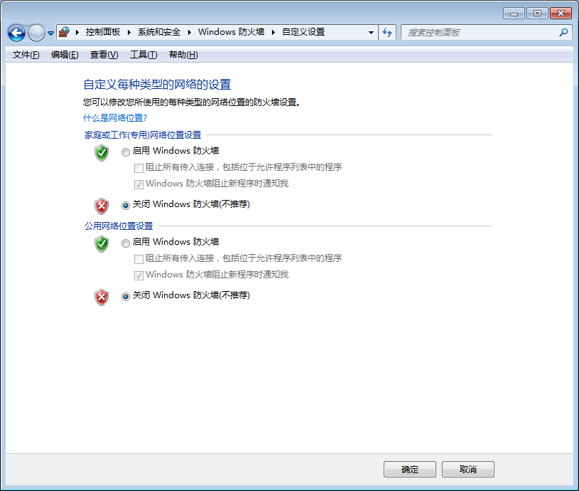1、 斷開網(wǎng)絡(luò),退出安全軟件,在控制面板/系統(tǒng)與安全/Windows防火墻對(duì)話框關(guān)閉防火墻