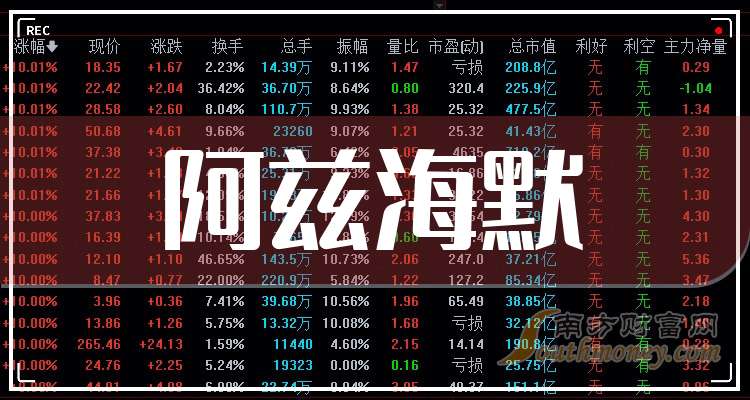 阿茲海默龍頭有哪些?據南方財富網概念查詢工具數據顯示,阿茲海默龍頭一覽: