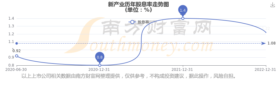 新產業最新一次公布的分紅方案為10派7元。本次權益分派股權登記日為2023年6月7日,除權除息日為2023年6月8日,派息日為2023年6月8日。